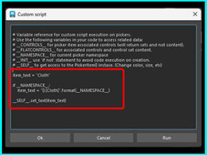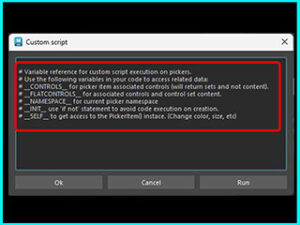 # Variable reference for custom script execution on pickers.